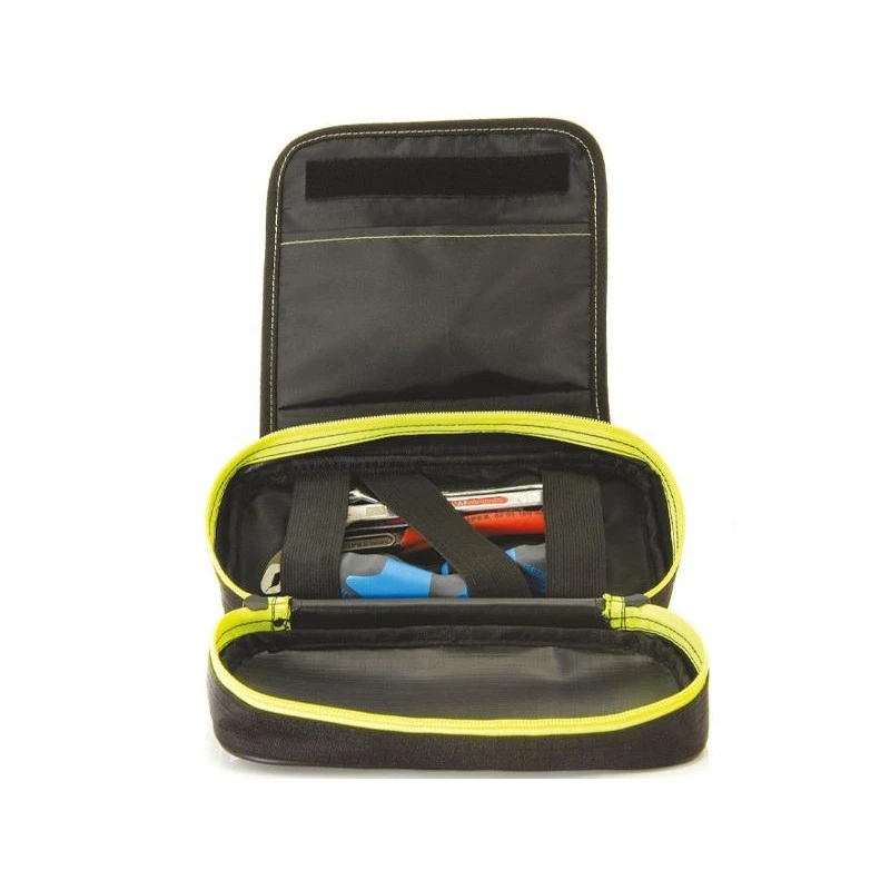 La bolsa de herramientas ACERBIS ha sido diseñada para ubicarla cómodamente en el guardabarros trasero de la moto. Tiene una capacidad de almacenamiento de hasta 3 litros y triple cierre de seguridad, para viajar sin ningún problema. El interior está compuesto por un compartimento central donde almacenar todas las herramientas necesarias y un bolsillo de menor tamaño en la parte exterior transparente.