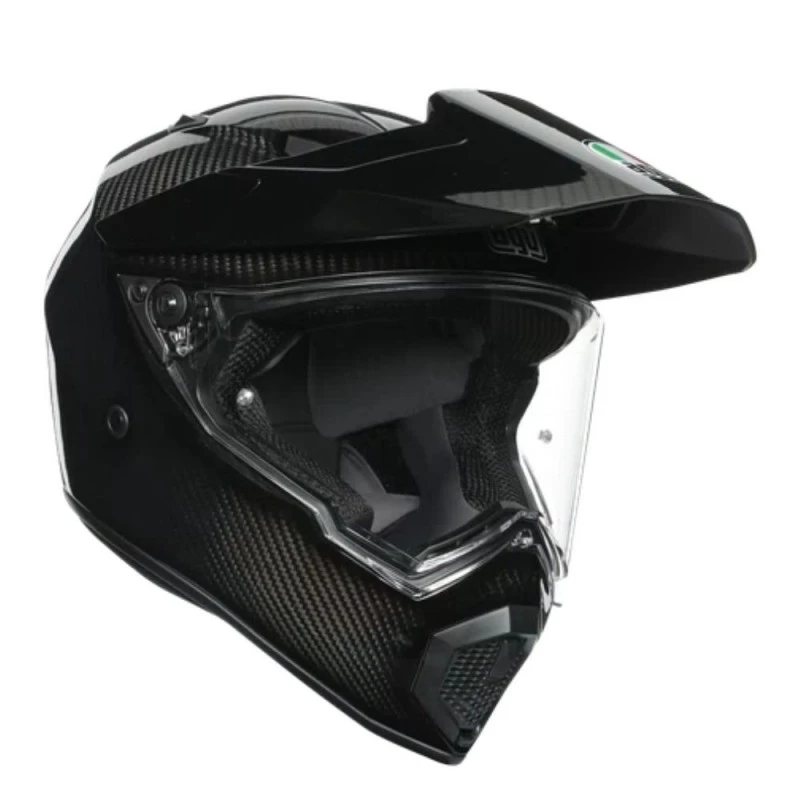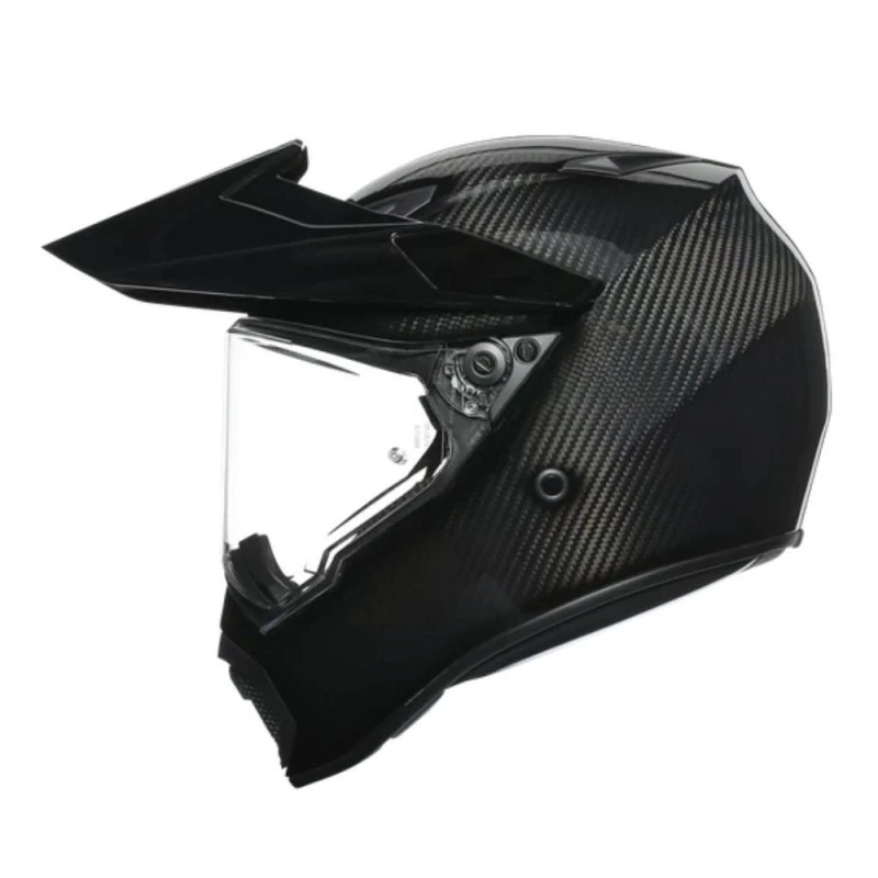 Casco AGV AX9 E2206 MPLK Mono carbon brillante. El nuevo AX9 es uno de los cascos más versátiles que jamás se ha fabricado, está preparado para todo ya que permite hasta 4 configuraciones diferentes. El AX9 puede utilizarse con o sin pantalla, con o sin visera, o con la combinación de ambos. Dispone de un avanzado sistema de ventilación y de unos acolchados interiores premium. Se trata de un casco muy ligero y cómodo concebido para ser usado en cualquier terreno y cualquier circunstancia.