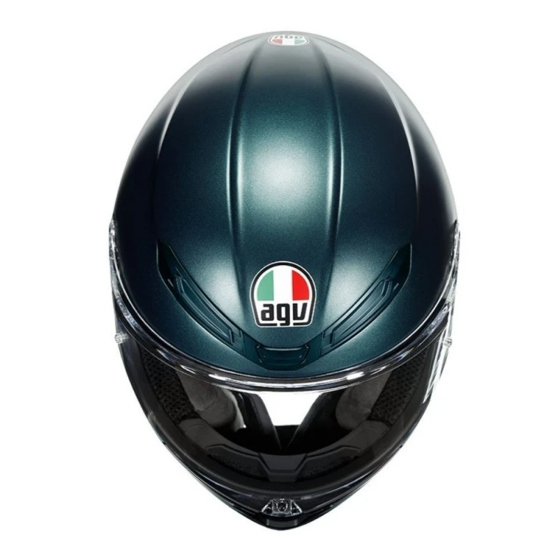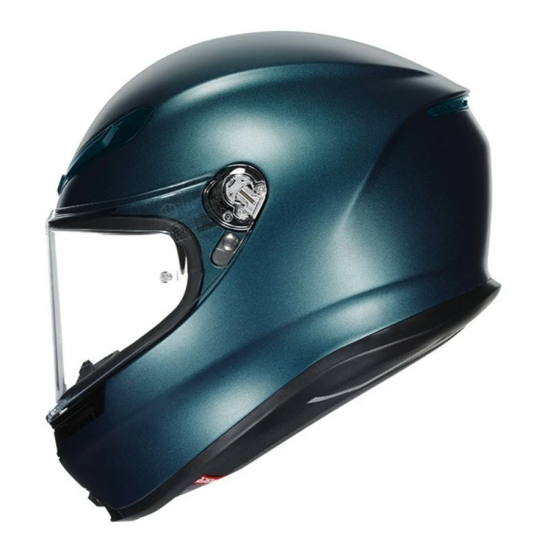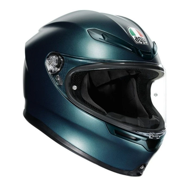 Casco AGV K6 Solid MPLK petroleo mate. El K6 es el nuevo casco integral de AGV que incorpora las mejores peculiaridades de los segmentos sport y touring. Exageradamente polivalente, es válido para todo género de desplazamientos sobre motocicletas deportivas, naked o sport-touring. Fabricado en fibra de carbono y aramida, presenta un diseño muy moderno y aerodinámico. Incorpora un eficiente sistema de ventilación y dispone de predisposición para montar el sistema de comunicación ARK.