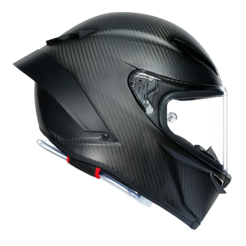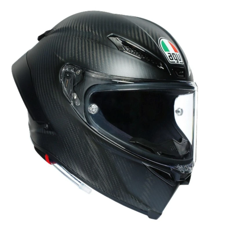 Casco AGV Pista GP RR E2206 DOT MPLK Mono carbono mate. El Pista GP RR es una réplica precisa del casco AGV usado en las carreras por los pilotos profesionales del torneo del planeta. Por esta razón, ha recibido la homologación de la FIM, que certifica el máximo nivel de protección posible, aun contra cualquier torsión peligrosa de la cabeza. Cada detalle está desarrollado para asegurar el máximo desempeño. La calota Extreme Carbon en fibra de carbono cien por ciento garantiza una excepcional ligereza, que hace que se pueda llevar sin esmero. Sus formas y los agujeros de ventilación metálicos han sido estudiados en el túnel de viento y probados por los atletas de AGV para asegurar la mejor penetración aerodinámica y la mayor estabilidad a grandes velocidades, asimismo a resultas del renovador perfil del alerón trasero PRO. Con un grosor de hasta cinco mm, la gorra óptica de clase 1 Ultravision es una parte integral de la protección que deja una visión panorámica de 190°. Esto quiere decir que el conduzco ve la pista, los contrincantes y los obstáculos con mayor claridad, ya antes que absolutamente nadie.