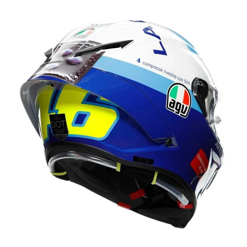 AGV ha desarrollado el nuevo casco Pista GP RR, desarrollado por y para los pilotos de MotoGP, pero al alcance de todos. Este modelo de la marca italiana cuenta con la homologación FIM, con la máxima certificación en seguridad y protección para los pilotos. Está fabricado en en fibra de carbono al 100%. Su diseño está completamente pensado para que la interferencia con el mono sea mínima y el ajuste a la cabeza perfecto, además, cuenta con un sistema de ventilación óptimo con spoiler trasero .