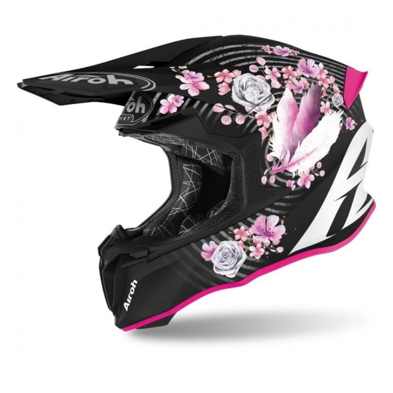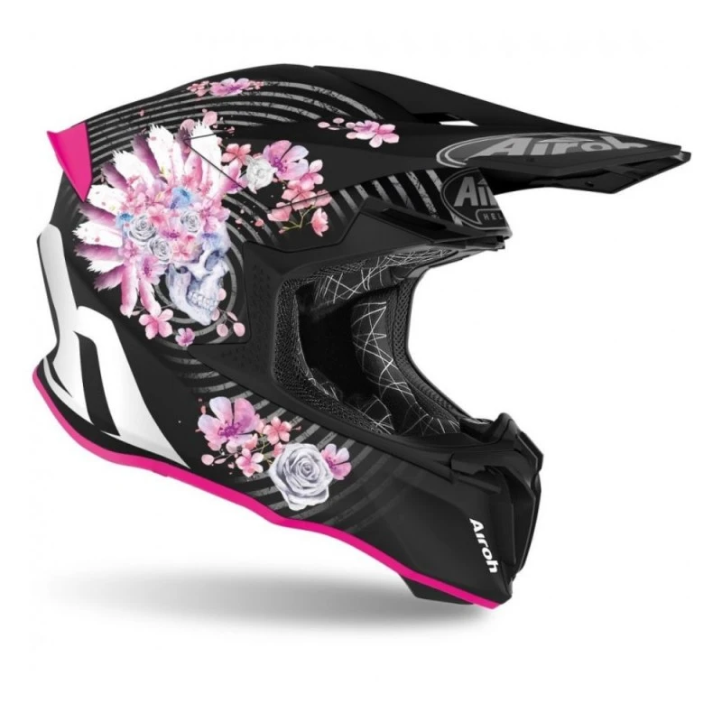Casco AIROH Twist 2.0 Mad mate. Casco de cross con un aspecto agresivo y un peso ligero. Calota fabricada de HRT (termoplástico de alta resistencia), la cual cuenta con 2 tamaños de EPS para un ajuste óptimo. Presenta un spoiler trasero que mejora su aerodinámica y estabilidad. El interior está preparado para extraerse en caso de impacto. Además, proporciona una ventilación formidable.
