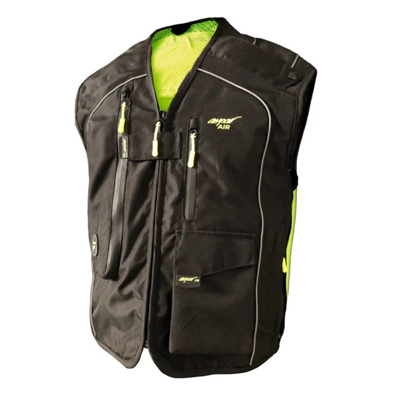 Chaleco ASPAR AIR Airbag Mod 1.0 negro / fluor. Imprescindible para todos los aventureros y entusiastas del motor, el Chaleco Airbag ASPAR AIR 1.0 representa la cumbre de la tecnología en protección personal.