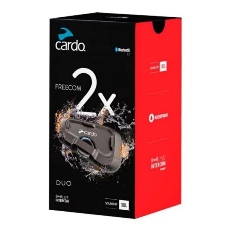 El nuevo intercomunicador Cardo Freecom 2X Duo incorpora tecnologías innovadores para el sector de la comunicación en carretera, como el Live Intercom o la reconexión automática de la conexión Bluetooth entre piloto y pasajero. Su calidad de sonido Premium es característica de los altavoces JBL. Su distancia de alcance piloto – piloto es de 800m y cuenta con una autonomía en conversación de 13 horas.