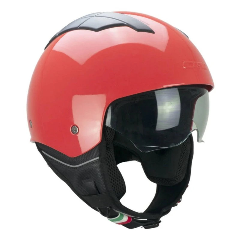 Casco CGM 111A Slot Mono Carmesi. Demijet compacto y ligero, el 111 es el casco ideal para afrontar las estaciones más cálidas gracias a las grandes ventilaciones de la calota que garantizan la circulación del aire en el interior del casco. Las ranuras se pueden cubrir fácilmente con las cubiertas especiales incluidas en el paquete. También tiene interiores perforados extraíbles y vidrios internos extra ahumados retráctiles.
