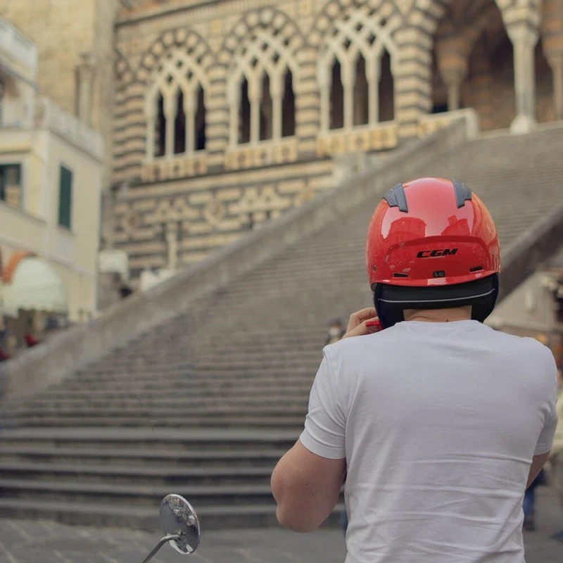 - Anilla antirrobo en la correa: útil anilla metálica para fijar el casco al enganche bajo el asiento del scooter de forma práctica y segura.