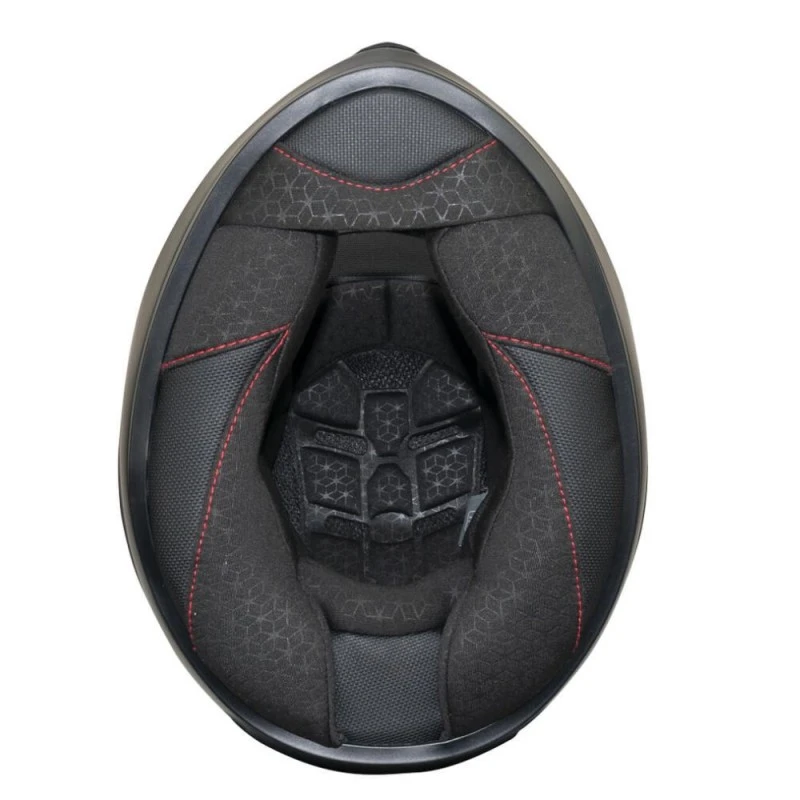 - El sistema de ventilación AIR STREAM SYSTEM está formado por tomas de aire frontales, conductos de aire en la calota interior y extractores traseros. El aire fresco entra por las tomas de aire frontales del casco y, pasando por los conductos especiales de la calota interior, llega al piloto. La circulación del aire se genera aprovechando el movimiento que genera una presión negativa y empujando el aire caliente interno hacia la parte trasera del casco de donde sale a través de los extractores de aire traseros. De esta forma el piloto se beneficia de un reciclaje constante del aire dentro del casco que garantiza siempre una temperatura agradable.