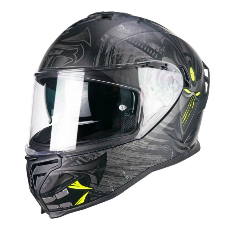 Casco CGM 363S Shot Nippo negro mate / amarillo fluor. El 363 SHOT es la respuesta de CGM al motociclista que busca un casco orientado a las carreras. La capa exterior y el innovador alerón trasero se han diseñado para maximizar la eficiencia aerodinámica a altas velocidades. Realizado en dos tallas de calota exterior, dispone de un sistema de termorregulación en el interior del casco, formado por tres zonas de conductos que garantizan un flujo de aire continuo. La visera exterior, preparada para Pinlock 70, es basculante para una perfecta adherencia a los dobles sellos perimetrales y junto con la cerradura en posición cerrada aseguran el silencio y el confort de conducción. El 363 también está equipado con un parasol retráctil interno. El compartimiento interior está compuesto por una tapa termoformada hexagonal, telas ExtraCool, bandas de alta visibilidad.