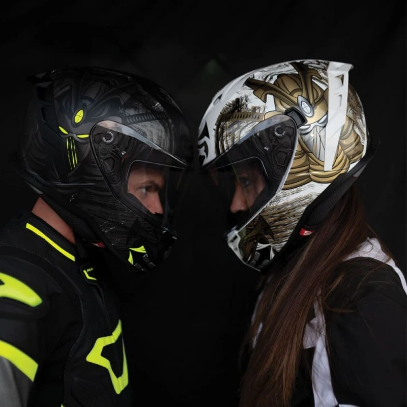 - Cada uno de nuestros cascos es tratado cuidadosamente para conseguir el acabado deseado. El caparazón, después de ser alisado, se pinta con varias capas de color y luego se cubre con barniz transparente resistente a los arañazos.