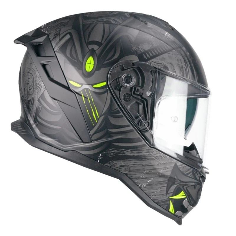 - La visera está equipada con un mecanismo de bloqueo especial que permite bloquearla firmemente en su lugar cuando está cerrada.