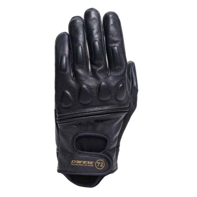 Guantes DAINESE Blackjack 2 negro / negro. Con un aspecto retro elegante y a la moda, los guantes Blackjack 2 son los guantes de moto ideales para pasar agradables jornadas de conducción en los meses de primavera y verano sin preocuparse por las temperaturas. Las inserciones de lycra en las cuatro puntas y el tejido perforado en el dorso de la mano garantizan el máximo confort térmico incluso en los días más calurosos. Una resistente y duradera confección en piel de cabra combina zonas en cómodo tejido con suaves acolchados de refuerzo en palma, nudillos y dedos, para una máxima protección. La inserción táctil inteligente en el dedo índice proporciona la máxima practicidad y completa la gama de características de estos guantes de estilo vintage e icónico.