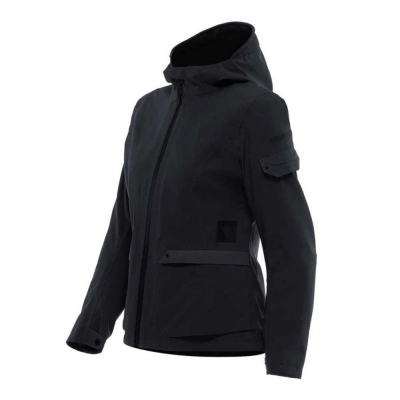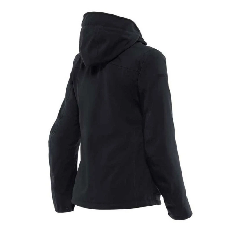 Chaqueta DAINESE Centrale Absoluteshell Pro Lady negro. Chaqueta corta de corte femenino con membrana impermeable Absøluteshell™ Pro, inspirada en el mundo outdoor. Ligera, funcional y protectora, ideal para viajes urbanos en todas las estaciones. Inspirada en las prendas funcionales del mundo outdoor y enriquecida con elementos del mundo urbano, Centrale Absøluteshell™ Pro Jacket WMN es una chaqueta corta con un corte acampanado diseñada específicamente para la morfología del cuerpo femenino.Centrale WMN está equipada con un cuello acolchado desmontable y una capucha que se puede enrollar gracias a una banda trasera reflectante mientras se conduce. Gracias al núcleo metálico interno plegable de la capucha, con el uso de una sola mano es posible crear una visera que protege el rostro de los elementos y ajusta la capucha alrededor del rostro (tecnología Uno Touch™ Hood Peak). Una vez que te hayas bajado del sillín, podrás calentarte las manos cómodamente en los bolsillos inferiores forrados e impermeables.