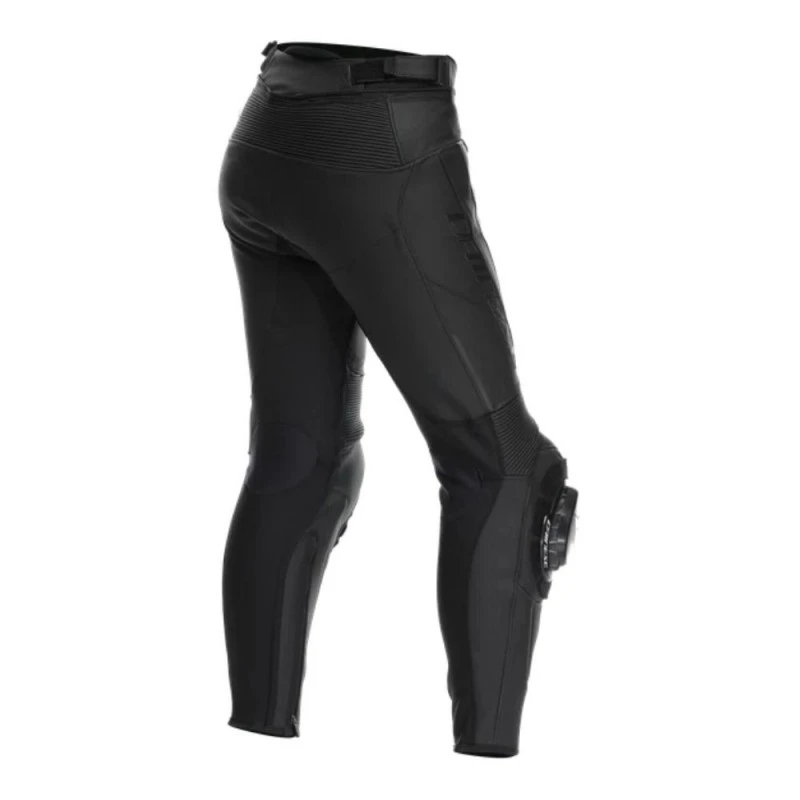 Pantalón DAINESE Delta 4 Lady negro / negro. Los Delta 4 WMN son unos pantalones de moto confeccionados en prestigiosa piel bovina tutu combinada con insertos de tejido elástico S1, al igual que la chaquetas Racing 4 Lady y Avro 5 WMN, a las que complementan a la perfección y a las que se pueden unir gracias a la práctica cremallera de conexión.