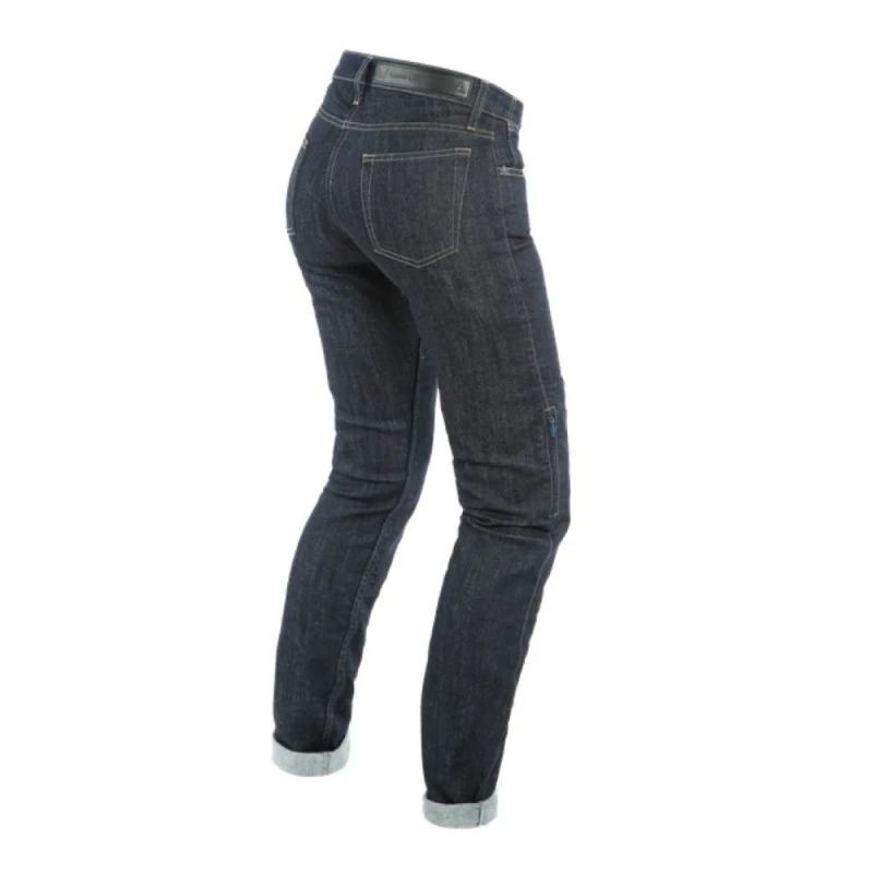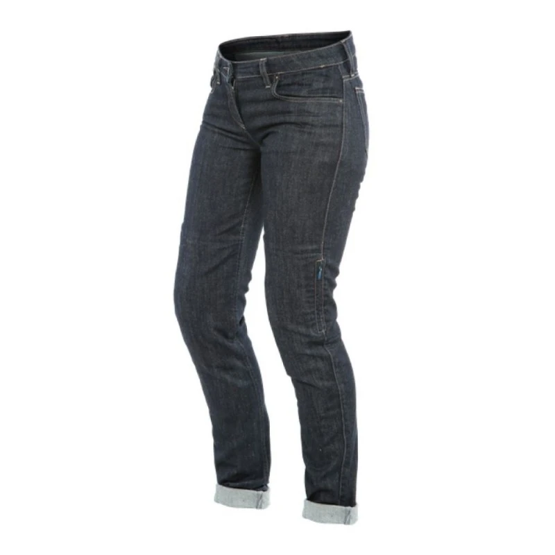 Vaqueros de mujer de protección para moto, perfectos tanto para conducir como para el día a día. Están hechos de tela vaquera protectora con hilo de fibra de aramida, que ofrece tanto protección como una comodidad adecuada para usar a diario.