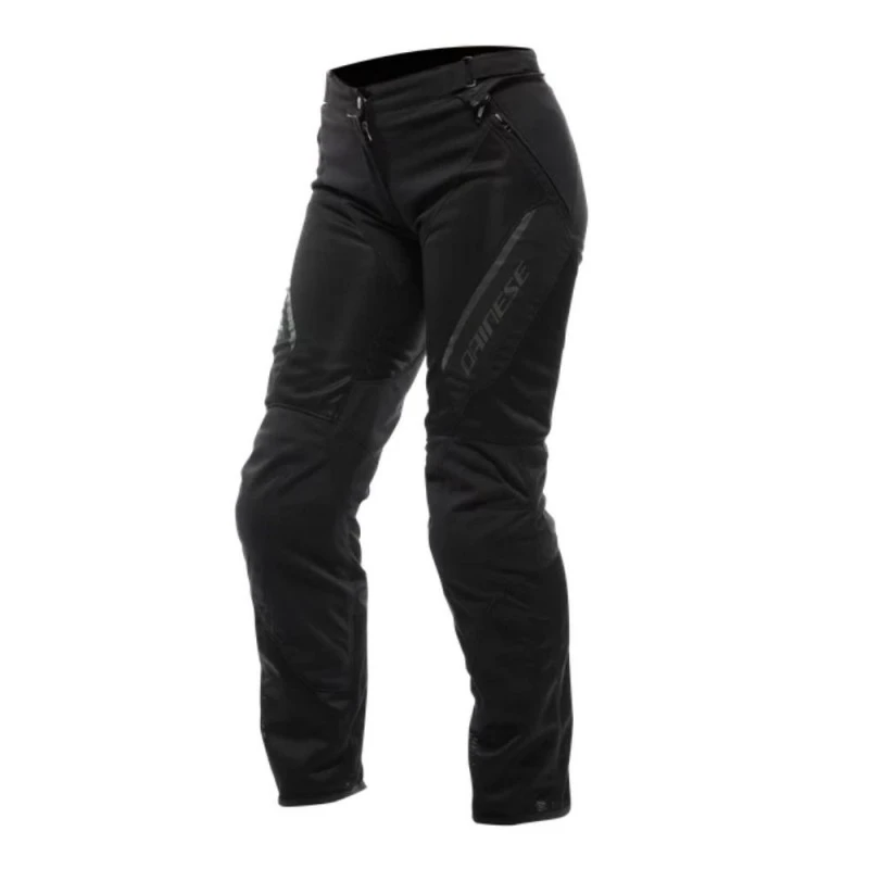 Pantalón DAINESE Drake 2 Super Air Tex Lady negro / negro. Diseñados para las rutas en moto en pleno verano, los Drake 2 Super Air Tex Pants WMN son unos pantalones de moto de corte femenino y de tela suave y ligera con una amplia superficie de mallapara garantizar a las motociclistas la máxima ventilación incluso en los días más calurosos.