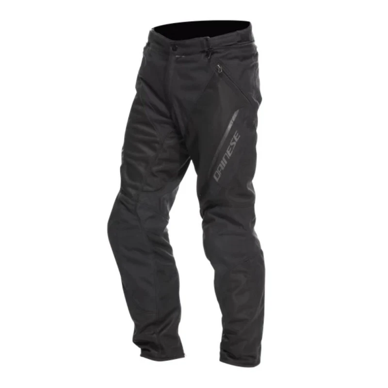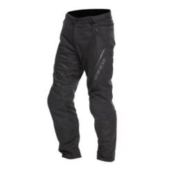 Pantalón DAINESE Drake 2 Super Air Tex negro / negro. Diseñados para salidas en moto en pleno verano, los Drake 2 Super Air Tex son unos pantalones de moto hechos de tela suave y ligera, construidos con una gran superficie de malla para garantizar al motociclista la máxima ventilación incluso en los días más calurosos.