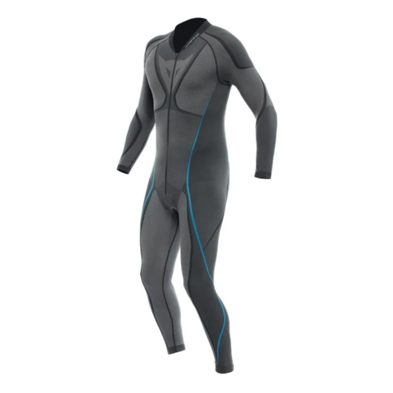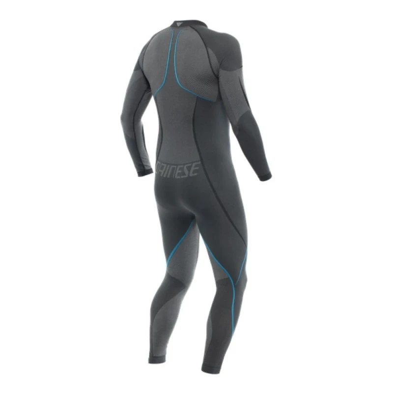 Traje DAINESE Dry negro / azul. Capa base ideal para llevar bajo el mono desarrollada para emplear a lo largo de todo el año y en temporadas de calor, merced a la construcción en tejido hidrófobo Dryarn, una tecnología que optima el proceso de administración del sudor y la humedad, sosteniendo el cuerpo siempre y en toda circunstancia seco.