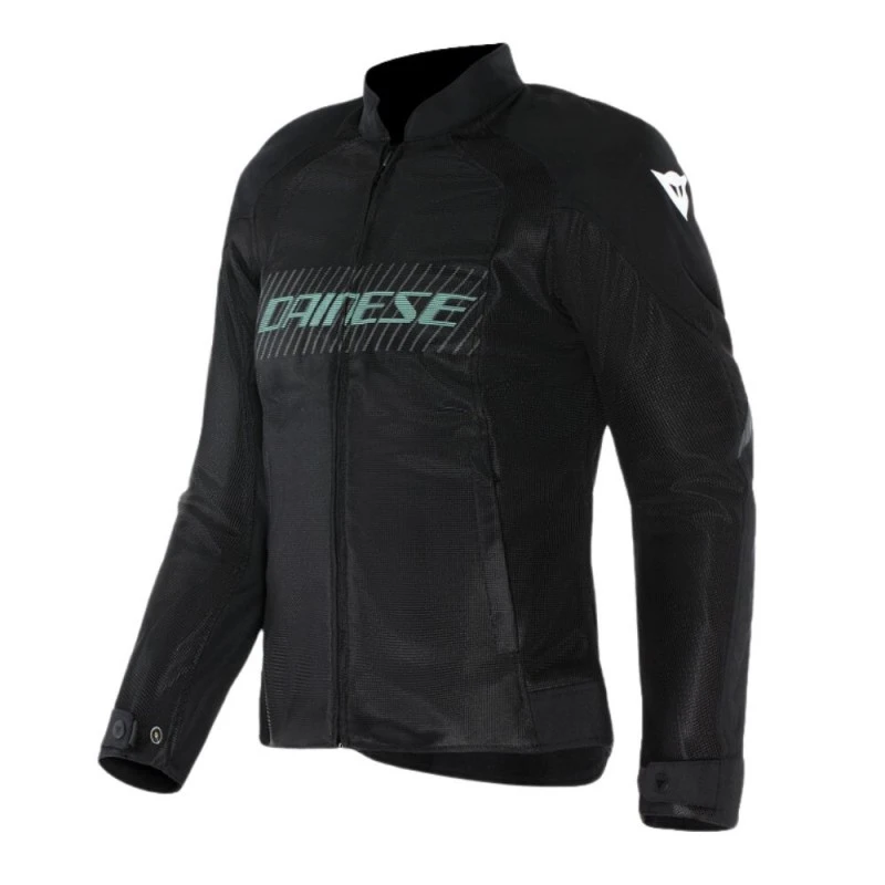 Chaqueta DAINESE Herosphere Air Tex Lady negro / gris / verde claro. Chaqueta de moto en tejido de malla con corte deportivo, diseñada específicamente para adaptarse al cuerpo femenino. Herosphere Air Tex Jacket WMN combina estilo y tecnicismo, combinando gráficos coloridos con avanzada soluciones técnicas suave, ligero y extremadamente ventilado para garantizar el confort térmico incluso en altas temperaturas, esta chaqueta está certificada según la norma EN 17092 clase A y cuenta con Pro- suave y ventilado protectores de armadura en hombros y codos, así como un bolsillo diseñado para acomodar protectores de espalda.