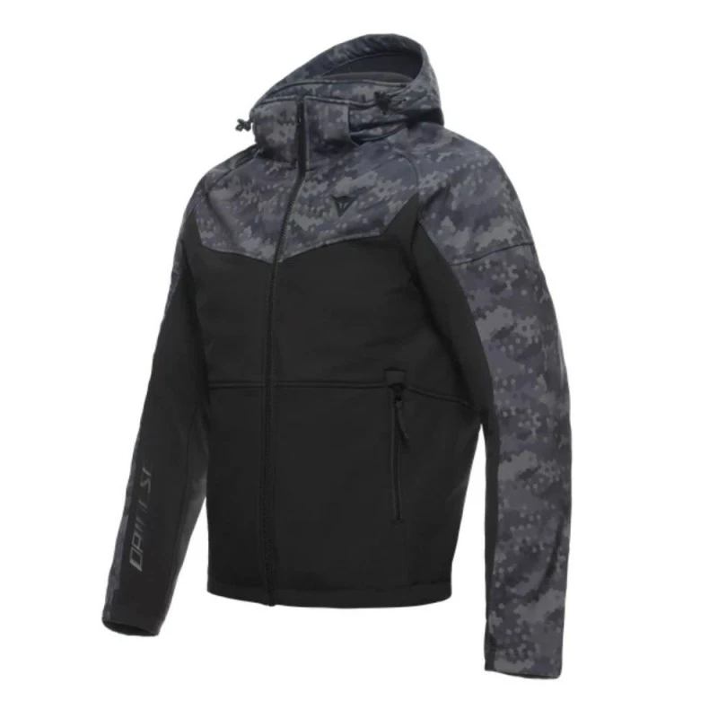Chaqueta DAINESE Ignite Tex negro / camo gris. Tejido polar diseñado para afrontar los retos diarios en moto. Con un estilo informal y dinámico, y la protección de una prenda de Dainese. La seguridad está garantizada por las protecciones blandas certificadas y desmontables Pro Armor en los hombros y en los codos, que permiten una gran libertad de movimientos tanto a la hora de conducir como en cualquier ocasión.