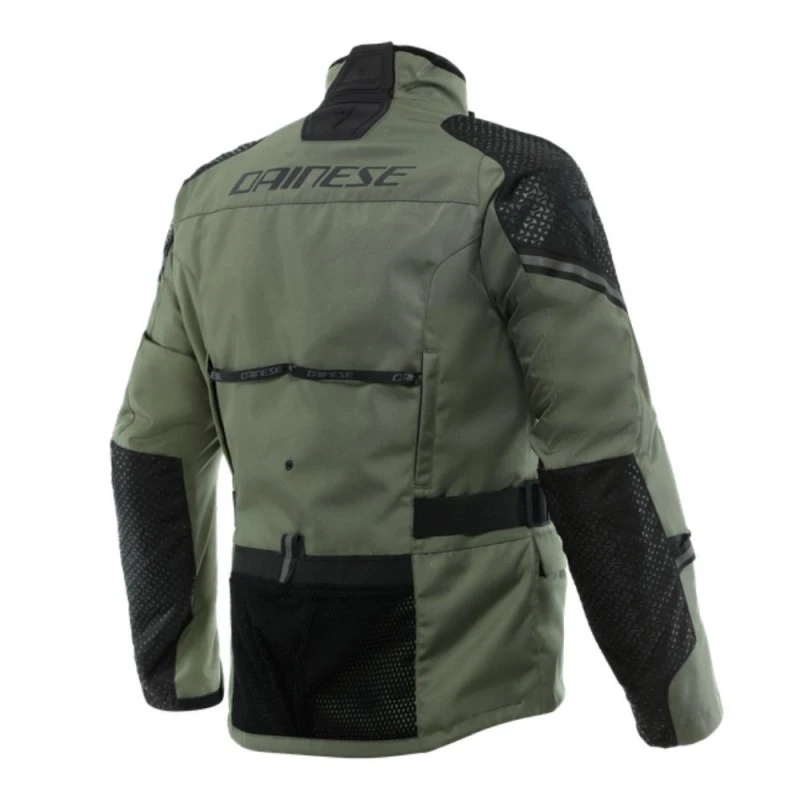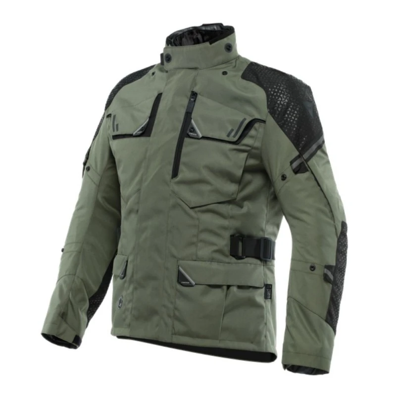 Chaqueta DAINESE Ladakh 3L D-DRY Army verde / negro. Es una chaqueta impermeable Touring Adventure desarrollada para viajes largos por carretera y off-road. Sumamente funcional y polivalente merced a su construcción de 3 capas, Ladakh 3L D-Dry® es ideal para utilizarse en todas y cada una de las temporadas.