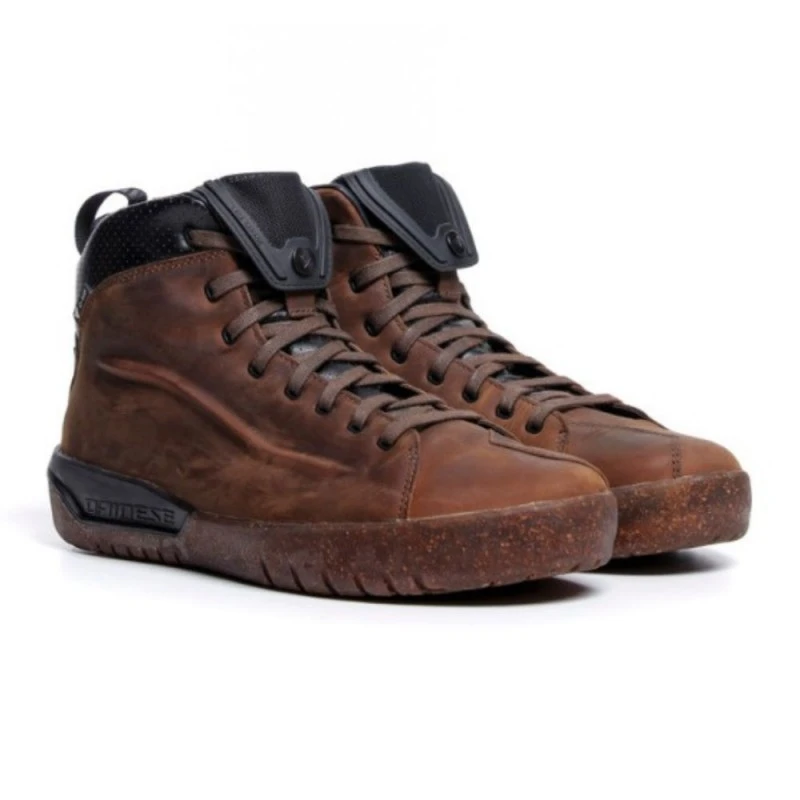 Botines DAINESE Metractive D-WP marron / natural rubbe. Fabricados en piel fina de grano completo, los Metractive D-WP son los zapatos de motocicleta impermeables hechos para ser utilizados en diferentes condiciones climáticas y en diferentes ocasiones a lo largo del día, tanto cuando se conduce como cuando se anda.Su peso ligero los hace convenientes para un uso perdurable, señalando la enorme atención prestada a la comodidad.Un enfoque en la comodidad se combina con uno en la seguridad, mediante refuerzos en el talón y el tobillo que aumentan la estabilidad y la protección. Las suelas asimétricas Groundtrax® están diseñadas para asegurar la máxima comodidad y estabilidad y un agarre y tracción ideales tanto en la conducción como fuera de la bici. Las suelas están diseñadas para asegurar la resistencia a la deformación en el caso de impacto.La cómoda cremallera lateral facilita el ajuste. La plantilla Ortholite® garantiza la máxima transpirabilidad y una amortiguación perdurable.