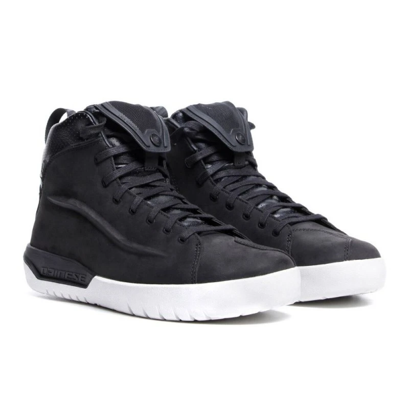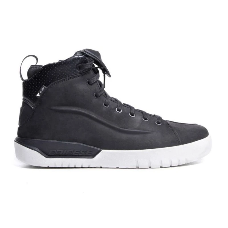 Botines DAINESE Metractive D-WP negro / blanco. Fabricados en piel fina de grano completo, los Metractive D-WP son los zapatos de motocicleta impermeables hechos para ser utilizados en diferentes condiciones climáticas y en diferentes ocasiones a lo largo del día, tanto cuando se conduce como cuando se anda.Su peso ligero los hace convenientes para un uso perdurable, señalando la enorme atención prestada a la comodidad.Un enfoque en la comodidad se combina con uno en la seguridad, mediante refuerzos en el talón y el tobillo que aumentan la estabilidad y la protección. Las suelas asimétricas Groundtrax® están diseñadas para asegurar la máxima comodidad y estabilidad y un agarre y tracción ideales tanto en la conducción como fuera de la bici. Las suelas están diseñadas para asegurar la resistencia a la deformación en el caso de impacto.La cómoda cremallera lateral facilita el ajuste. La plantilla Ortholite® garantiza la máxima transpirabilidad y una amortiguación perdurable.