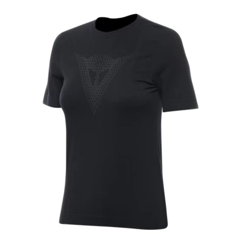 Camiseta DAINESE Quick Dry Tee Lady negro. Es la camiseta interior Dryarn® para mujer diseñada para secarse en el menor tiempo posible. Hipoalergénica y antiolor, Quick Dry Tee WMN es una solución cómoda y extremadamente práctica para afrontar incluso viajes de larga distancia, ya que se puede lavar por la noche y estar lista para salir por la mañana.
