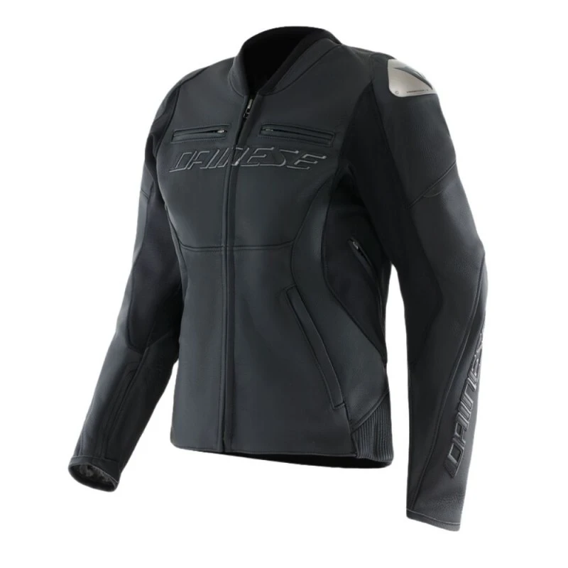 Chaqueta DAINESE Racing 5 Lady negro / negro. La Racing 5 es la chaqueta de moto para mujer con un corte regular y ajuste deportivo hecho de fina piel de vaca Tutu de 1,2 mm. Un enfoque en la ergonomía llevó a estudios sobre las posiciones de conducción, con el fin de detalles perfectos diseñados para reducir la presión en el cuello, como el cuello Veloce Racing Neck, y para garantizar máximo confort y movilidad integrando tejido ancho bielástico S1 así como sistemas de ajuste en la caderas. La comodidad de conducción se combina con niveles superiores de protección con certificación EN 17092 clase AA, el Racing 5 WMN.