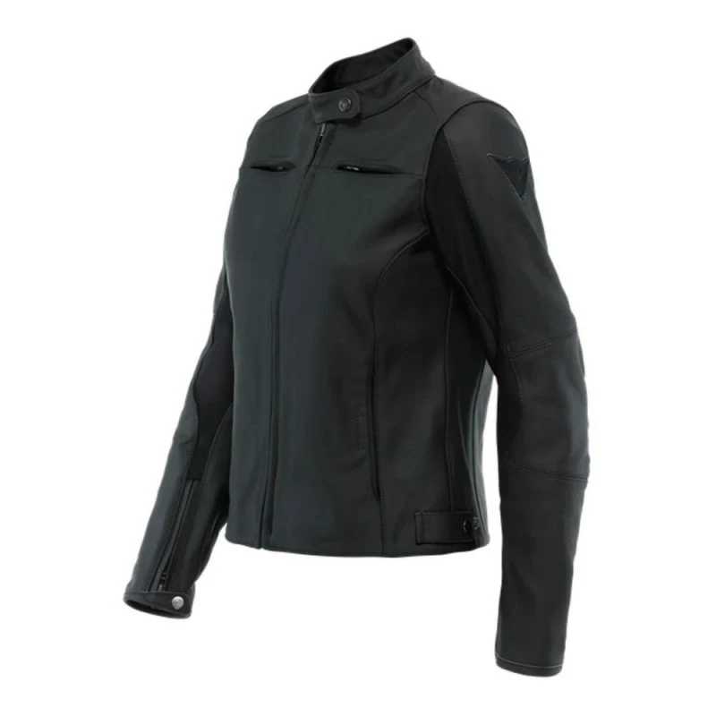 Chaqueta DAINESE Razon 2 Perf Lady Leather negro. Chaqueta de piel Dainese Razon dos Lady Negra. Chaqueta en especial desarrollada para asegurar un ajuste optimado para la mujer. Confeccionada en suave y resistente piel bóvida Cordoba, dispone de protecciones Pro Armor homolgadas en hombros y codos para mayor seguridad y confort. Incorpora entradas de aire con cremallera en la zona frontal. Resalta por ofrecer geniales niveles de libertad de movimientos.