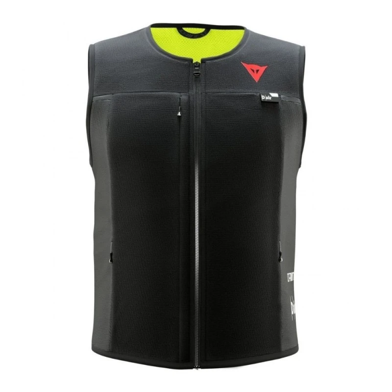 Chaleco Protector DAINESE Smart Jacket Lady V2 negro / amarillo fluor. Dainese ha desarrollado, con su tecnología D-Air, el chaleco inteligente SMART Jacket, que ofrece una protección extra sin necesidad de cables que se conectan a la moto. Este revolucionario producto se puede usar solo o encima / debajo de cualquier prenda (se recomienda usar siempre con chaqueta)