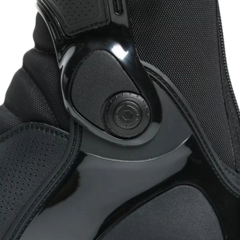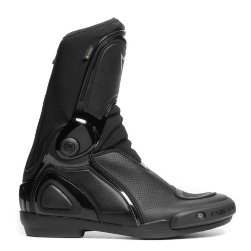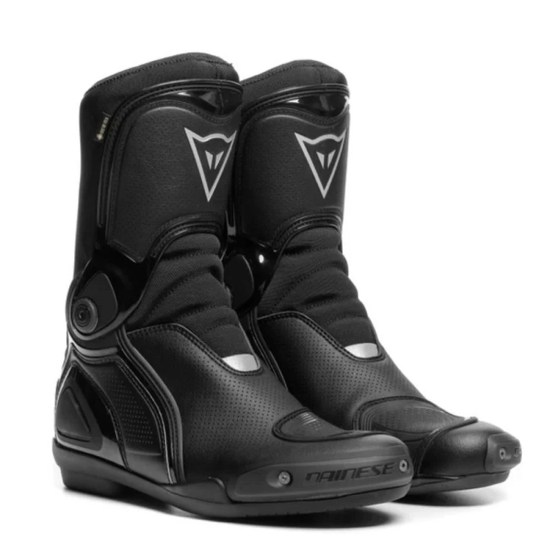 Botas DAINESE Sport Master Gore-Tex® negro. El Sport Master GORE-TEX® está diseñado con una construcción de tipo IN, para usarse por dentro de los pantalones, con el fin de obtener un conjunto sumamente estilizado. Esta estructura también protege la bota en caso de lluvia, para que el agua no entre desde arriba. La membrana de GORE-TEX® ofrece las mejores prestaciones en cuanto a impermeabilización y aislamiento de los agentes atmosféricos, manteniendo una óptima transpiración para disfrutar de un gran confort en cualquier situación.