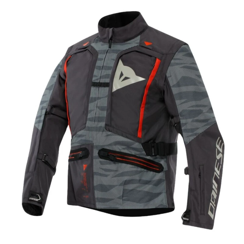 La chaqueta Sterrato Tex presenta un ajuste compatible con chaleco y seguridad todoterreno, si se quita los protectores compuestos de hombros y codos certificados EN 1621.1 Nivel 2 que lleva puestos equipado el nivel de protección de esta prenda de moto, certificada según EN 17092 A, puede ser aún mayor aumentado debido a los bolsillos para acomodar el protector de espalda tipo G y el cofre Pro-Armor Chest 2 PC protector. Además de útiles bolsillos en la parte delantera y en la manga izquierda, y el impermeable interior bolsillo, la chaqueta tiene dos bolsillos en la espalda, uno externo donde se pueden guardar fácilmente las mangas una vez retirado y otro destinado a alojar la bolsa de agua, dotado de un gancho interno específico. Las características de la Sterrato Tex Jacket se completan con el práctico lazo para sujetar el pantalón a la chaqueta y la opción de ajustar el ajuste en muñecas, caderas y cintura.