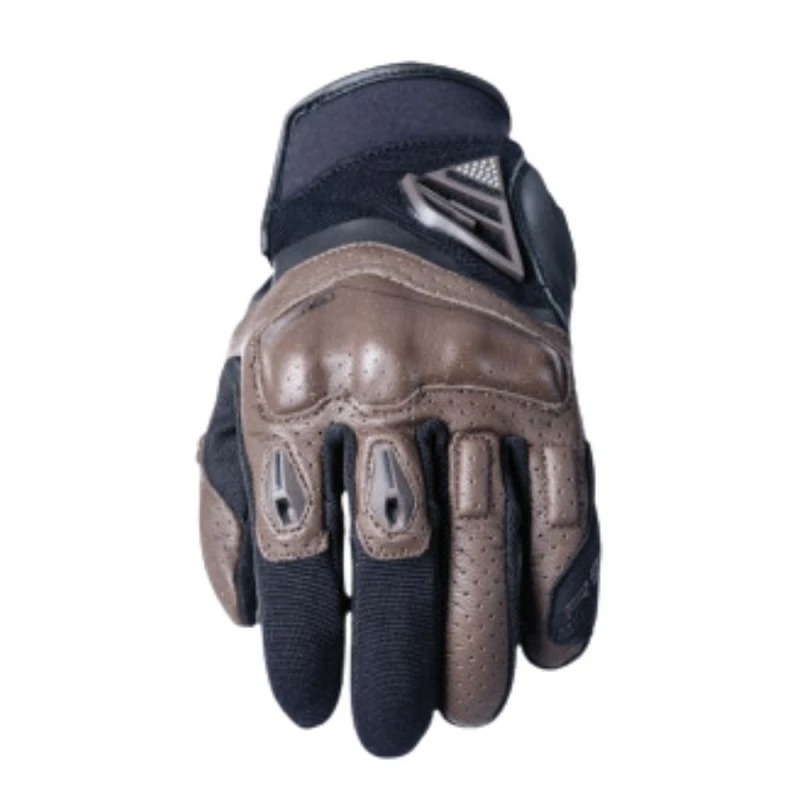 Guantes FIVE RS2 Evo marron. Ha sido renovado en dos mil veintiuno pero sosteniendo sus mejores características así como un diseño actualizado que incluirá una nueva pieza de protección FIVE Ergo Protech. También será aún más práctico, con nuevas funciones como el Touch Screen para poder manejar pantallas táctiles con los guantes puestos. La parte superior en piel de cabra micro horadada, elegida por su flexibilidad y para aportar una mayor ventilación incluye una zona de confort en Spandex de cuatro vías, para un placer de conducción perfecto.