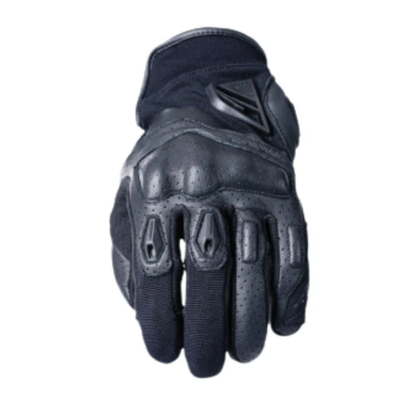 Guantes FIVE RS2 Evo negro. Ha sido renovado en dos mil veintiuno pero sosteniendo sus mejores características así como un diseño actualizado que incluirá una nueva pieza de protección FIVE Ergo Protech. También será aún más práctico, con nuevas funciones como el Touch Screen para poder manejar pantallas táctiles con los guantes puestos. La parte superior en piel de cabra micro horadada, elegida por su flexibilidad y para aportar una mayor ventilación incluye una zona de confort en Spandex de cuatro vías, para un placer de conducción perfecto.