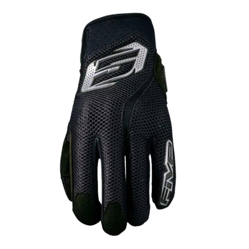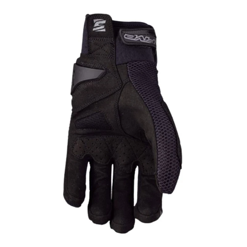 Guantes FIVE RS5 Air negro. Los nuevos RS5 AIR (compilación 2020) son los guantes de verano más ventilados que Five ha fabricado. Pensados para motoristas que circulan a diario por las calles de la ciudad y que procuran la máxima transpiración en los días más calurosos del verano. Confeccionados principalmente en tejido de Airmesh 3D de celda ancha para una mayor entrada del flujo de aire. Para ofrecer una flexibilidad máxima, los guantes Five RS5 AIR disponen de Lycra entre los dedos anular y medio además de esto para garantizar el compromiso perfecto entre flexibilidad y ventilación.