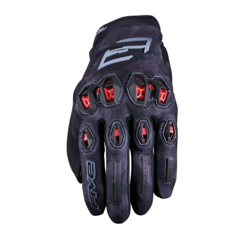 Guantes FIVE Stunt Evo 2 camo / rojo. Guantes STUNT EVO 2 de FIVE representan la evolución en protección y estilo para el motociclista moderno. Están fabricados con el innovador tejido Twill Span y no solo prometen durabilidad, sino que también garantizan una comodidad sin precedentes y un look distintivo que no pasará desapercibido.