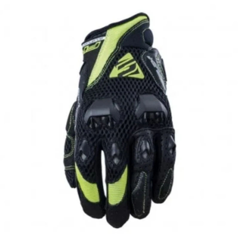 Guantes FIVE Stunt Evo Airflow negro / amarillo fluor. Versión ventilada del STUNT EVO. Se emplea una estructura de malla muy abierta en la parte superior para una circulación de aire óptima de la parte superior en la malla muy abierta para la circulación de aire óptima. Guante 100 por cien diseñado por Five. Imitado muy con frecuencia pero nunca igualado. El STUNT se considera, y con razón, como el guante original de su clase. El STUNT EVO cuenta con un nuevo diseño y nuevas protecciones en nudillos al lado de una nueva protección en la palma de fibra de carbono.