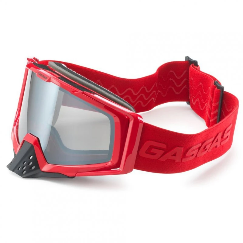 Las gafas GasGas Offroad KID están confeccionadas en una combinación de materiales como el poliuretano, el poliéster y el policarbonato. Su pantalla incorpora su tecnología antivaho y un tratamiento antirayaduras. La cinta de ajuste cuenta con una franja de silicona que evita el deslizamiento por el casco.