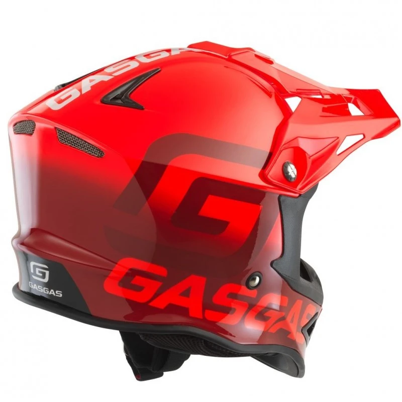 El casco GasGas Offroad está fabricado su calota exterior en fibra de vidrio, convirtiéndose en un casco ligero y muy versátil. Su forro interior está confeccionado en EPS de doble densidad e incorpora lengüetas de emergencia para la rápida extracción del acolchado lateral.