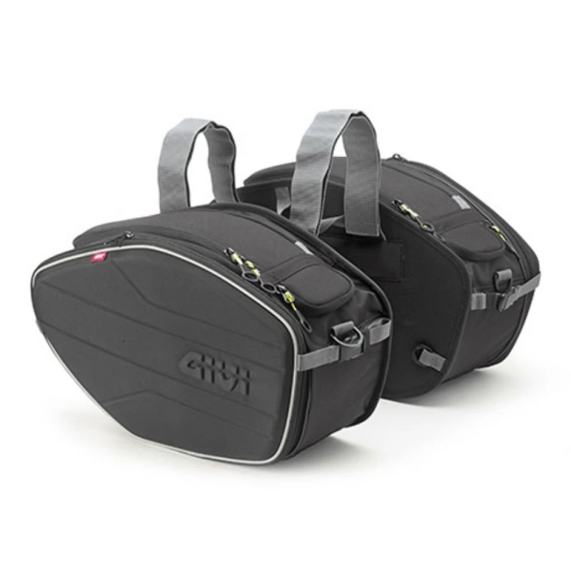 Alforjas laterales GIVI EA101C Expandibles 30LTS. Alforjas laterales pequeñas expandibles, 30 L. Dotada de un sistema de enganche rápido por medio de correas con cierre auto-adherente y con correa central de seguridad.