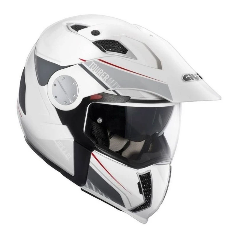 Casco GIVI HX01D-B910 Blanco. Con el HX01D de Givi tendrás un casco todo terreno que se adapta a cualquier situación. Podrás aplicarle un estilo y prestaciones trail con su visera, las comodidades de un casco modular o dejarlo en un práctico casco jet perfecto para el verano. Con su mentonera y visera exttraíbles, el motorista tiene la elección.