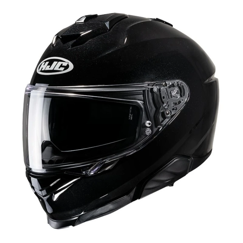 Casco HJC i71 negro metálico. El i71 supera los límites de un modelo Sport-Touring con su nuevo y elegante diseño de calota. El casco de policarbonato avanzado tiene ahora 3 calotas en las 6 tallas disponibles para ayudar a optimizar el peso y la comodidad del piloto. La ventilación superior reorganizada con aberturas de ventilación ampliadas en la boca que permiten una mayor entrada de aire y ventilación. También son nuevas en el i71 la pantalla y el visor solar. La pantalla HJ-38 Pinlock ready viene con un nuevo sistema de bloqueo PE (Push/Eject) para mejorar la seguridad, aunque sigue siendo fácil de usar con guantes.