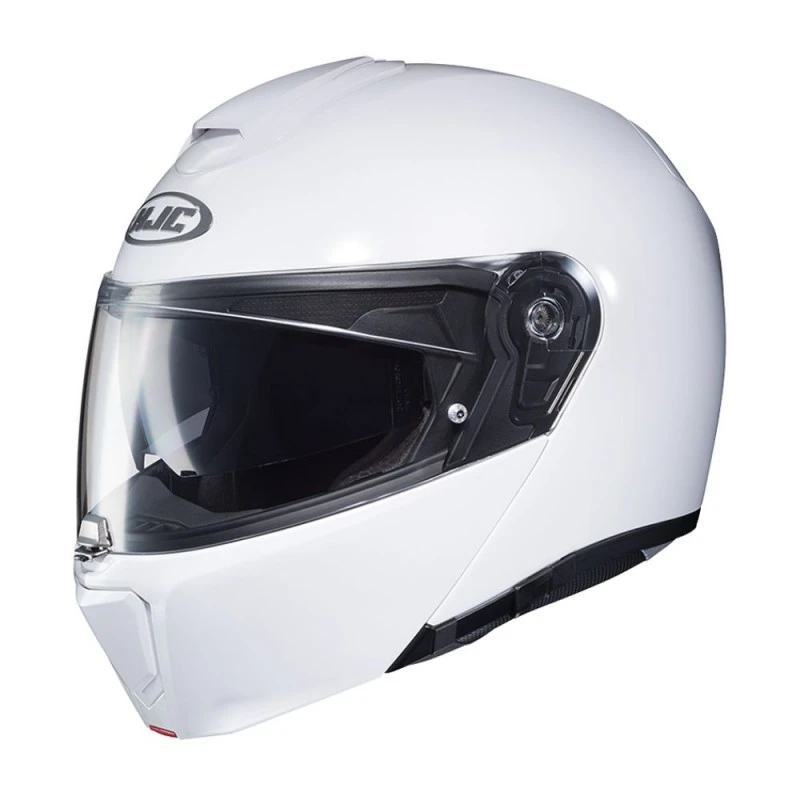 Casco HJC Rpha90S blanco perla. El reinventado RPHA 90S es el casco modular más compacto, parecido a un casco integral por su peso y apariencia, pero funcionando como un casco modular. El Premium Integrated Matrix (P.I.M. Plus) calota proporciona un rendimiento mejorado de resistencia a los golpes y un casco cómodo y muy ligero utilizando materiales de refuerzo que incluyen carbon y carbon- tejido híbrido de vidrio. El visor solar con revestimiento antivaho y antirrayaduras tiene una mayor visibilidad para reducir la tensión ocular y bloquear la luz solar. Para reducir el ruido en un casco modular, el RPHA 90S tiene un interior de bajo ruido diseñado en 3D que se enfoca para reducir el ruido significativamente.