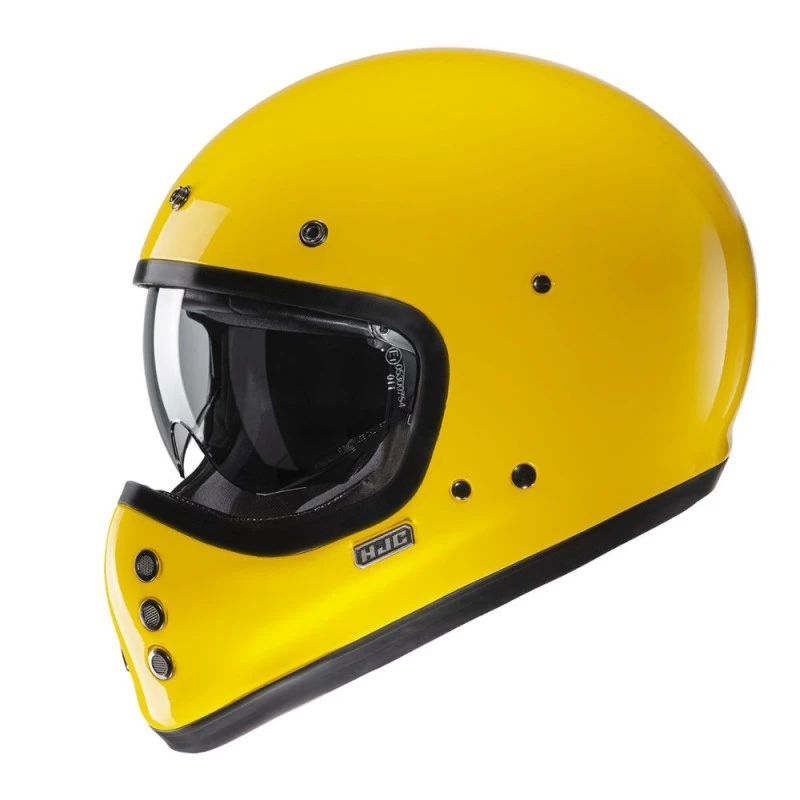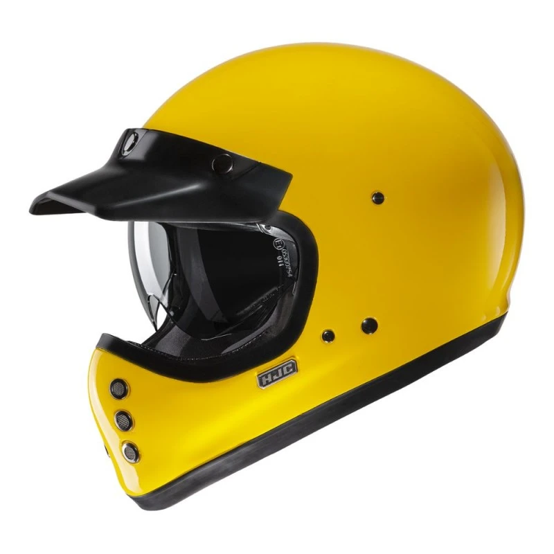 Casco HJC V60 amarillo profundo / amarillo deep. Con un estilo tradicional y un toque moderno, el HJC V60 agrega una nueva categoría de cascos a nuestra gama off-road para dos mil veintidos. Inspirado en el FG-01 original de la década de 1980, el V60 va más allá del aspecto vintage con características de la nueva era, como una calota de fibra de vidrio ligera, un enorme visor solar interior IS-10, huecos para altavoces incorporados, interior extraíble y lavable, y almohadillas para las mejillas con liberación de emergencia para mayor seguridad.