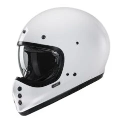 Casco HJC V60 blanco. Con un estilo tradicional y un toque moderno, el HJC V60 agrega una nueva categoría de cascos a nuestra gama off-road para dos mil veintidos. Inspirado en el FG-01 original de la década de 1980, el V60 va más allá del aspecto vintage con características de la nueva era, como una calota de fibra de vidrio ligera, un enorme visor solar interior IS-10, huecos para altavoces incorporados, interior extraíble y lavable, y almohadillas para las mejillas con liberación de emergencia para mayor seguridad.