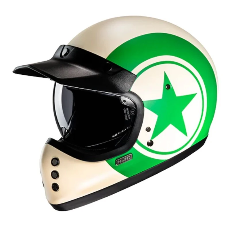 Casco HJC V60 NYX MC4SF. Con un estilo clásico con un toque moderno, el Hjc V60 añade una nueva categoría de cascos a nuestra línea todoterreno para 2022. Inspirado en el FG-01 original de la década de 1980, el V60 va más allá del aspecto vintage con peculiaridades de la nueva era. como una carcasa de fibra de vidrio liviana, una visera solar interior grande IS-10, bolsillos para parlantes incorporados, interior extraíble y lavable y almohadillas para las mejillas de liberación de emergencia para mayor seguridad.