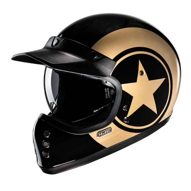 Casco HJC V60 NYX MC9. Con un estilo clásico con un toque moderno, el Hjc V60 añade una nueva categoría de cascos a nuestra línea todoterreno para 2022. Inspirado en el FG-01 original de la década de 1980, el V60 va más allá del aspecto vintage con peculiaridades de la nueva era. como una carcasa de fibra de vidrio liviana, una visera solar interior grande IS-10, bolsillos para parlantes incorporados, interior extraíble y lavable y almohadillas para las mejillas de liberación de emergencia para mayor seguridad.