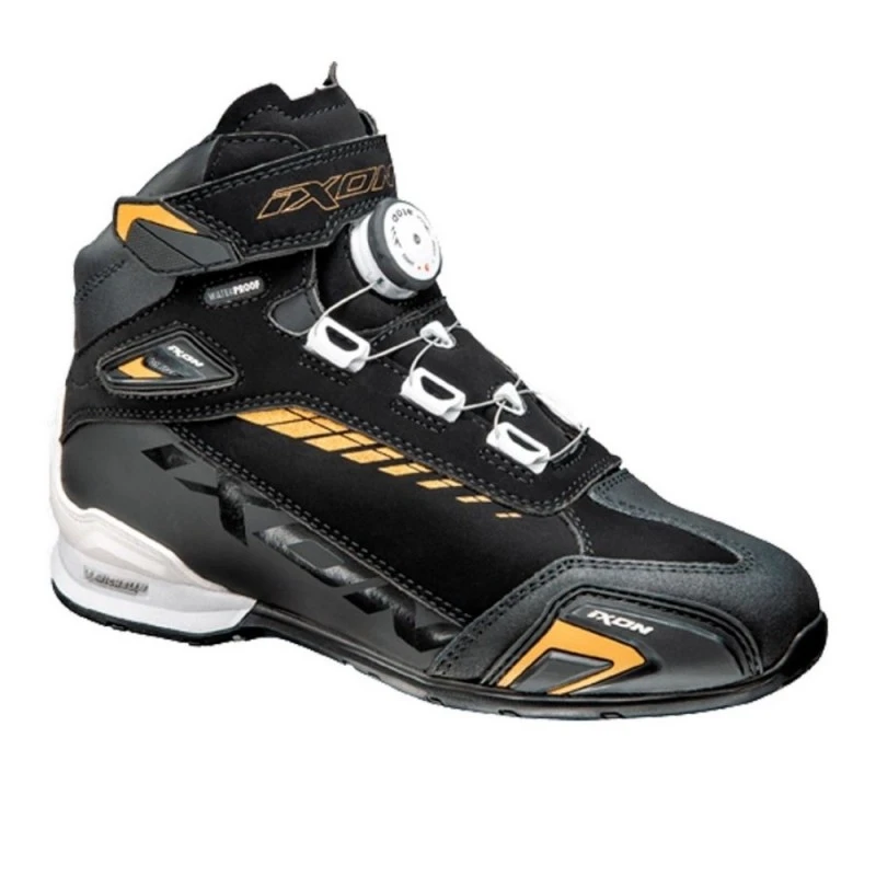 Botines IXON Bull WP Lady negro / blanco / dorado. Las zapatillas de motocicleta Ixon Bull Wp ofrecen soluciones técnicas renovadoras con un diseño que combina agresividad con la máxima elegancia. Confeccionadas con una combinación de materiales de alta calidad, las zapatillas Ixon Bull Wp incorporan una membrana impermeable y transpirable para mayor funcionalidad en días lluviosos. Resalta su sistema ATOP de apertura y cierre con correa de unión en el tobillo que da un ajuste ajustado, veloz y segurísimo.