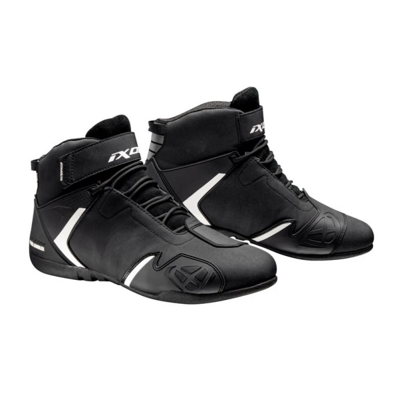 Botas IXON Gambler WP negro / blanco. Diseño deportivo y membrana impermeable y transpirable para mayor utilidad en diferentes tiempos. Dan un genial ajuste y confort y además de esto garantizan una inmejorable seguridad merced a a las protecciones situadas en la puntera, el talón y la zona del cambio. El cierre a través de velcro y cordones es seguro y veloz.