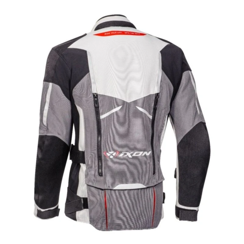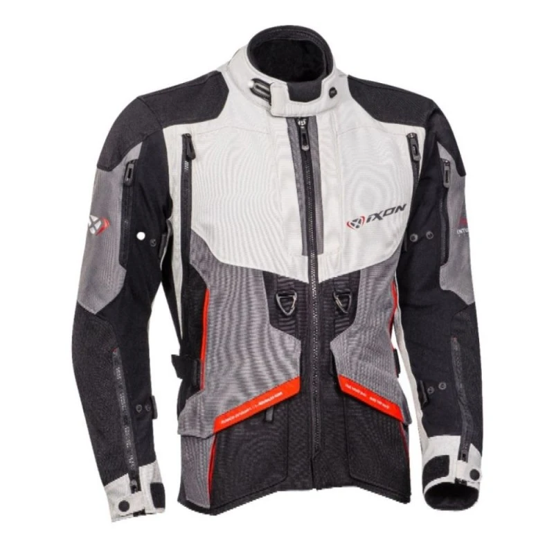 Chaqueta IXON Ragnar negro / gris / rojo. La chaqueta Ixon Ragnar encabeza la gama Adventure dos mil veintiuno de Ixon. Una chaqueta 3 en 1 válida para cualquier circunstancia climatológica. Con sus múltiples ventilaciones en brazos, pecho y espalda nos sostiene ventilados y frescos en los días calurosos, y merced a su membrana extraíble X-Dry de 26.000 mm de impermeabilidad y 20,000 G/m2 de transpirabilidad (comparable a las membranas más populares del mercado) y a su forro térmico de 160 gr (asimismo desmontable) nos sostendrá secos y calientes en cualquier condición, aun en las más extremas.